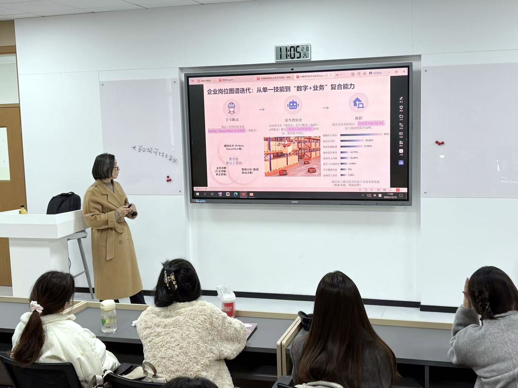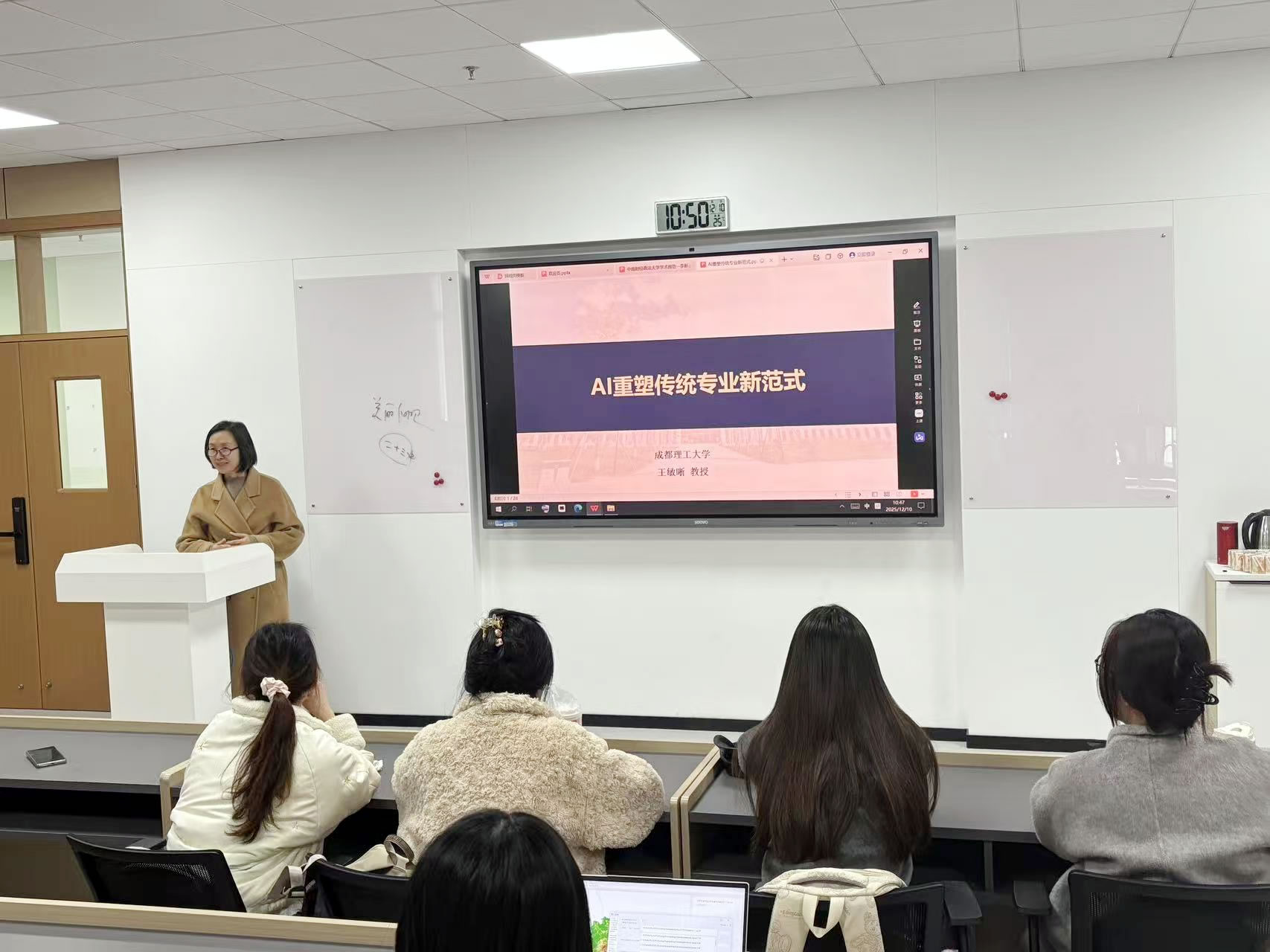 (通讯员:杨诗晴)2025年12月10日上午11:00-12:00,由工商管理学院工商管理系主办的学术讲座“AI重塑传统专业新范式”在文瀚楼东601室成功举行。本次讲座聚焦数智化浪潮下的高等教育变革与人才培养新路径,特邀成都理工大学管理科学学院大数据管理系王敏晰教授担任主讲嘉宾。讲座由工商管理系栗洋副教授主持,吸引了学院三十余名硕博研究生及本科生积极参与。