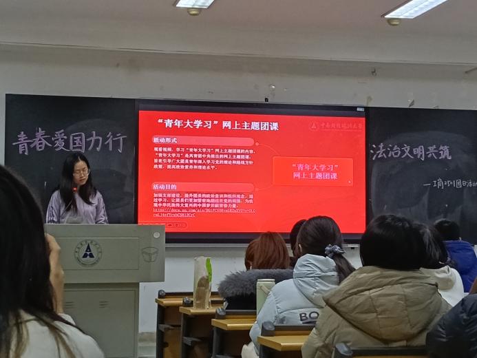 活动尾声,团员们集中观看“青年大学习”网上主题团课,深入学习“青春为中国式现代化挺膺担当”内容。团课以生动案例传递思想力量,引导团员们领悟青年成长成才的时代要求,持实事求是态度、涵实干创新精神,以行动自觉践行作为大学生的使命担当。