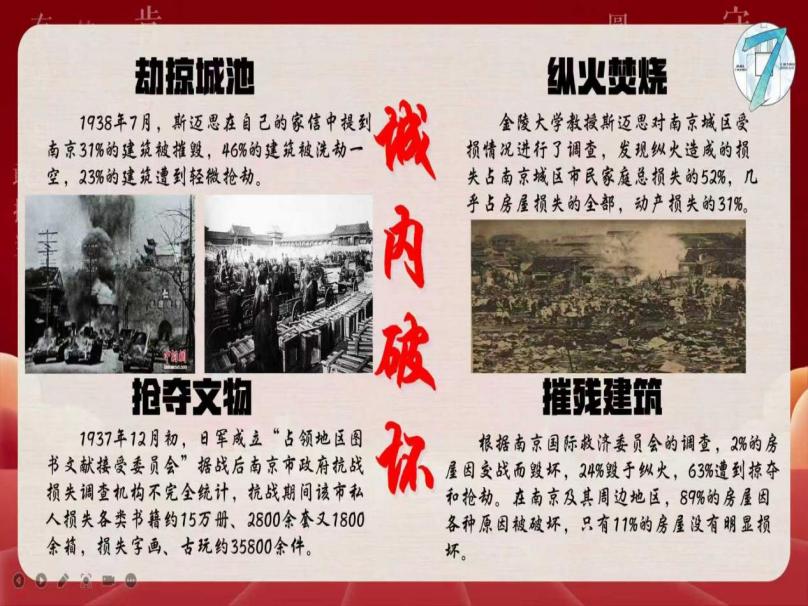 “回忆国殇”环节,支部成员共同缅怀南京大屠杀历史。通过展示的“八·一三”淞沪会战要图,大家明晰了南京失陷的历史背景:1937年11月上海沦陷后,日军兵分三路水陆并进,合围南京。而当看到日军在南京进行长达6周的有组织、有计划、有预谋的大屠杀,实施强暴民女、建立慰安制度、屠杀军民、劫掠城池、纵火焚烧等暴行时,成员们无不愤慨。