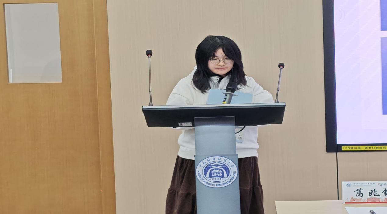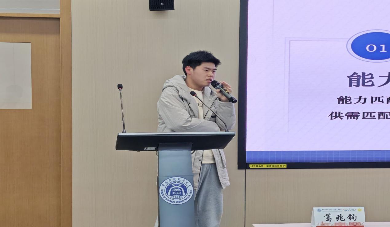 工商管理学院电商2201班的葛兆钧曾获第十四届全国大学生电子商务“创新,创意及创业”挑战赛省级一等奖,直播电商实战赛省级一等奖等荣誉。他从比赛前期,中期,后期三个阶段为同学们深入讲解在参赛的不同时期所要做的准备,葛师兄的讲解得面面俱到,逻辑清晰,令在场的同学们受益匪浅。