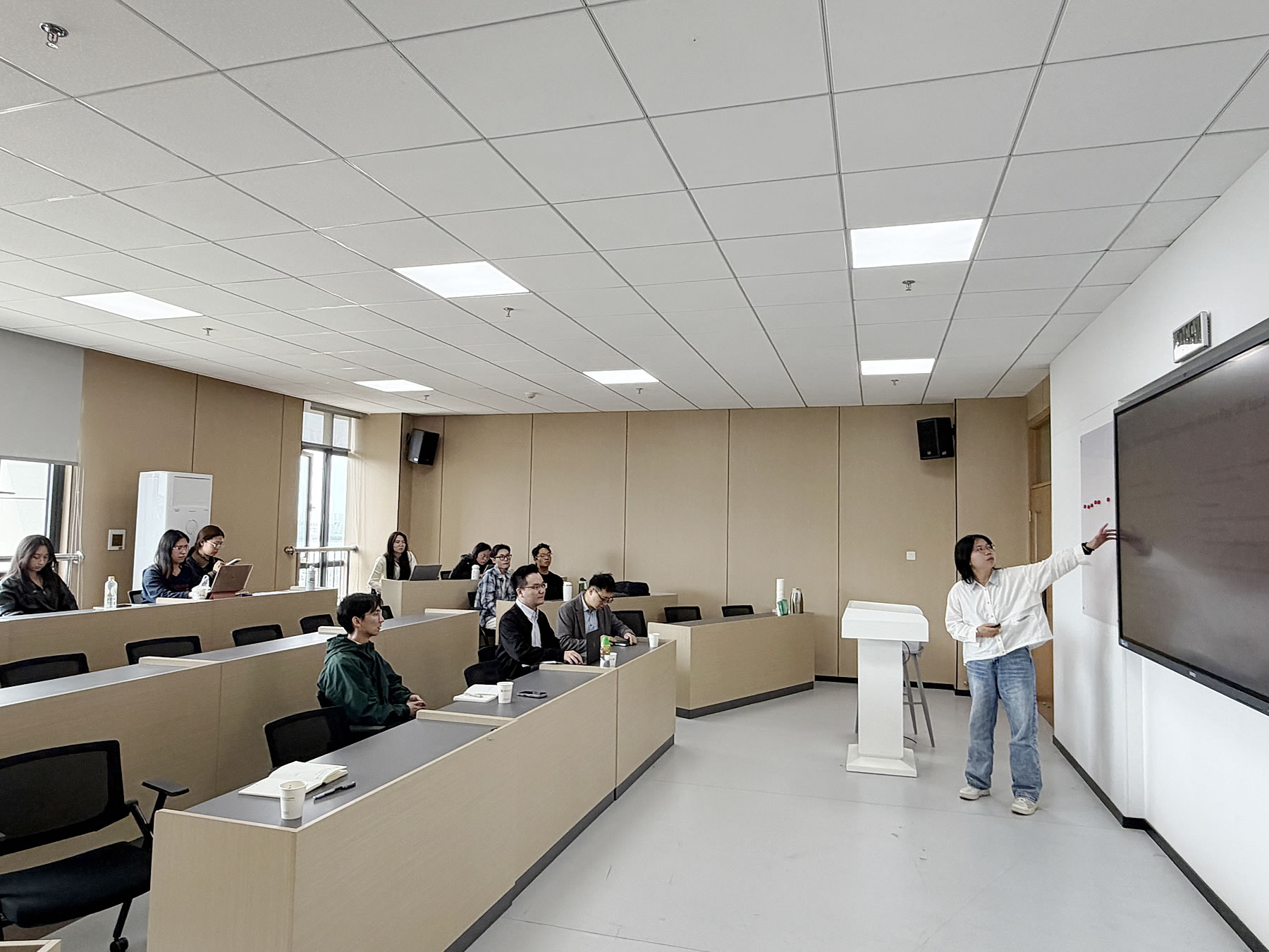 主题分享结束后,我院博士生董雅静围绕供应链网络中主体沟通与绩效关系这一前沿方向,汇报了当前的论文成果。该研究采用实证方法,并融合多元经典管理理论搭建研究框架。Hugo Lam教授结合顶刊发表标准对该项研究进行了专业点评,并提出了系统性修改建议。