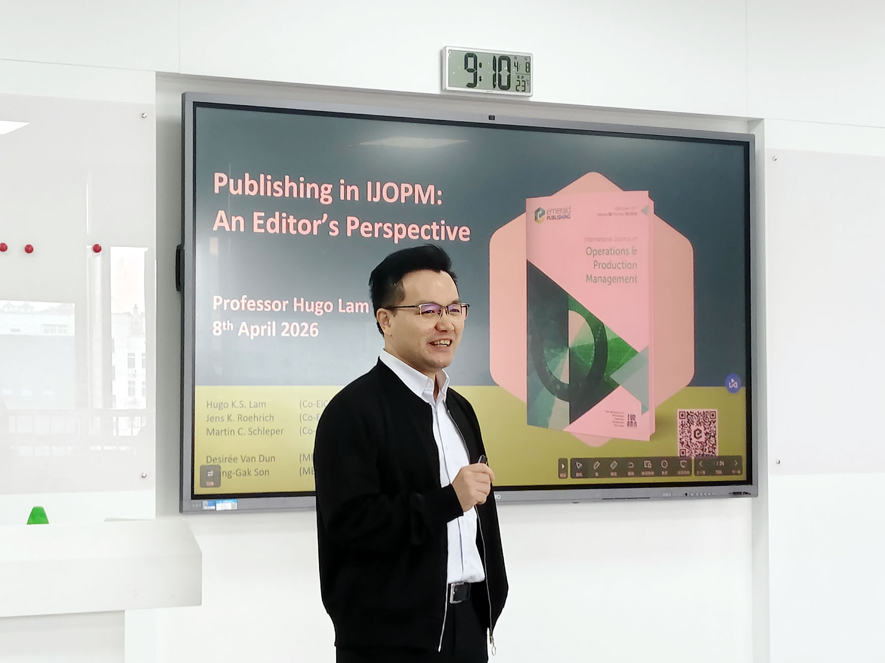 (通讯员:曹萱)2026年4月8日上午,由运营与供应链管理系主办的学术讲座“在IJOPM上发表:一位编辑的视角”在文瀚楼东601会议室成功举办。本次讲座邀请了英国利物浦大学管理学院运营管理讲席教授兼学术主任、《International Journal of Operations & Production Management》(《国际运营与生产管理期刊》,简称IJOPM,为我校A类及ABS 4星期刊)联合主编Hugo Lam担任主讲嘉宾,工商管理学院副院长董慈蔚教授主持,学院运营与供应链管理学科的师生到场参与交流。
