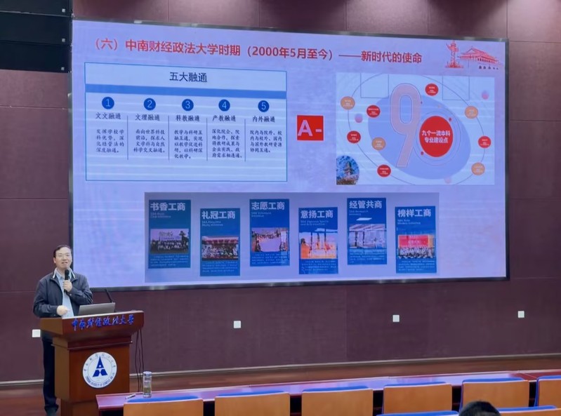 开班典礼后,余小朋书记以《中国共产党在新民主主义革命时期的奋斗历程及启示》为题,进行专题授课。课程围绕新民主主义革命时期的历史背景、重大事件、核心成就展开,从五四运动的思想觉醒、中国共产党的诞生,到土地革命、抗日战争、解放战争的壮阔征程,系统梳理了党在艰苦卓绝的斗争中带领人民争取民族独立、人民解放的百年奋斗史。与此同时,回溯校史和院史,在历经组织架构调整、学科专业合并后,学院实现专业化起步;教学资源日益丰富,形成经法管融通的鲜明特色,天然蕴含着红色商科的基因。张人价、周肇先、应谷声、李贤沛等前辈先贤筚路蓝缕,推动本科教育与研究生教育全面发展。结合史料与时代启示,他强调,同学们要传承红色基因,强化使命担当;把握时代大势,增强战略定力;对标党员标准,严守纪律底线。