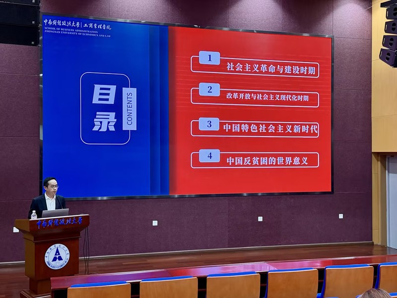 随后,吴海涛院长围绕《中国共产党的光辉历程—反贫困》开展专题授课。课程以党的反贫困实践为主线,从革命年代的救济式扶贫探索,到中华人民共和国成立后的制度性扶贫,再到新时代脱贫攻坚战的全面胜利、乡村振兴战略的持续推进,全面展现了中国共产党始终坚持以人民为中心、致力于改善民生的责任与担当。吴院长结合脱贫攻坚的鲜活案例与伟大成就,深入阐释了中国特色反贫困理论的核心要义,引导学员深刻认识共同富裕是中国特色社会主义的本质要求,激励学员在新时代传承党的为民初心,践行服务人民的宗旨。学员们认真学习、深入思考,进一步坚定了听党话、跟党走的理想信念。
