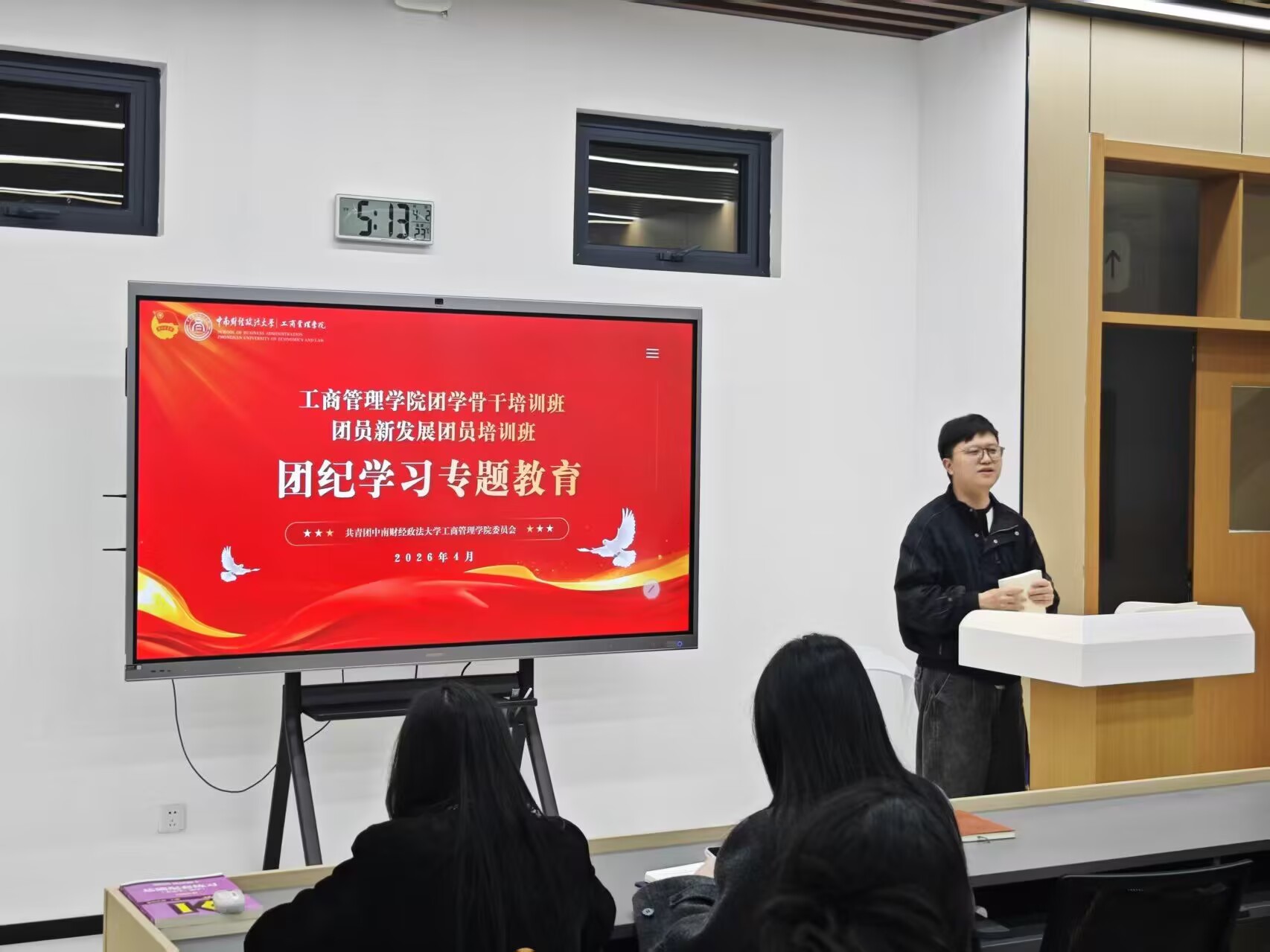 会议上,何强老师系统介绍了共青团全面从严治团的七个方面具体要求,并详细解读了团中央颁布的《中国共产主义青年团纪律处分条例(试行)》。何老师对新发展团员和团学骨干遵守团的纪律等方面做出要求,倡导他们要带头遵守纪律,增强组织观念,积极参加团组织的学习活动,确保顺利完成培养任务。