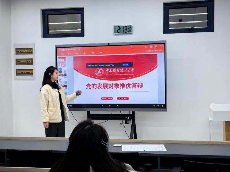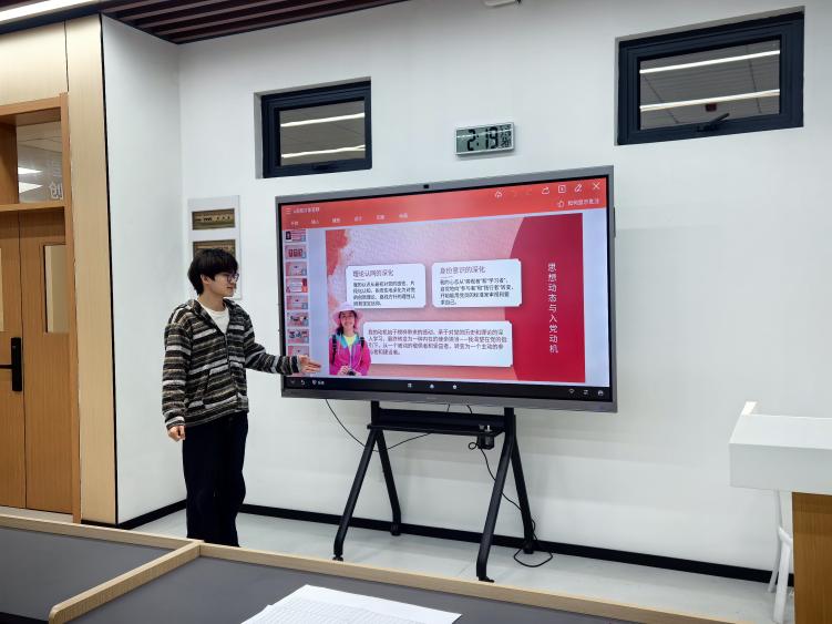 会上,团支部书记李佳欣介绍了推选发展对象的基本条件和评审程序。刘淑贞、马田田、姚光乾、阿克波塔·塞开、范静怡、李亭逸六位候选人依次上台,围绕个人情况、理论学习、担当作为、能力本领和工作作风等方面进行陈述。