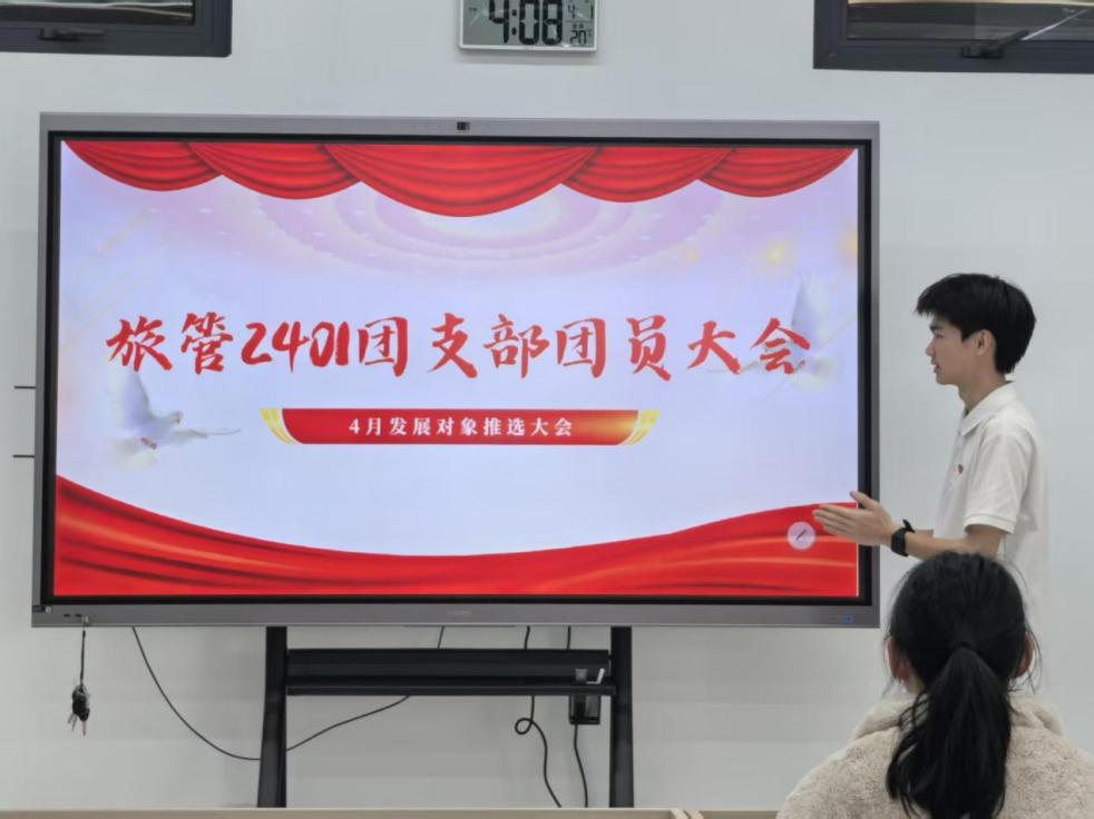 (通讯员 李萌)2026年4月1日旅管2401团支部于文瀚楼东603教室顺利开展团员大会。本次会议旨在进一步加强团员队伍建设,严格规范推优程序,切实做好党员发展对象的推荐与考察工作,为党组织培养和输送政治素质过硬、综合表现突出的优秀青年力量。