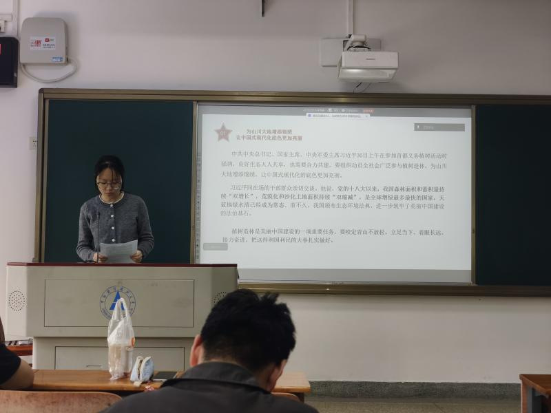 在集中学习环节,夏梓煜同志带领全体党员开展专题学习。她领学《习近平:为山川大地增添锦绣让中国式现代化底色更加亮丽》重要讲话精神,深入阐释全民义务植树、国土绿化、生态保护对于美丽中国建设与中国式现代化的重要意义;同时领学《习近平:推动海洋经济高质量发展》重要论述,系统介绍我国海洋经济发展成就、战略部署与实践方向,引导党员深刻理解生态文明建设与海洋强国建设的时代内涵。