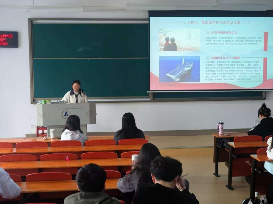 随后,万紫嫣同志领学了《为蓝色国土赋能添彩——学习习近平关于推动海洋经济高质量发展的重要讲话精神》。她回顾了我国经略海洋的悠久历史,介绍了2024年我国海洋经济规模突破10.5万亿元的喜人成绩,并详细解读了推动海洋经济高质量发展的“六个方面”重点任务。通过学习,党员们对我国建设海洋强国战略的布局有了更清晰的认识,也增强了投身中国式现代化建设的责任感。