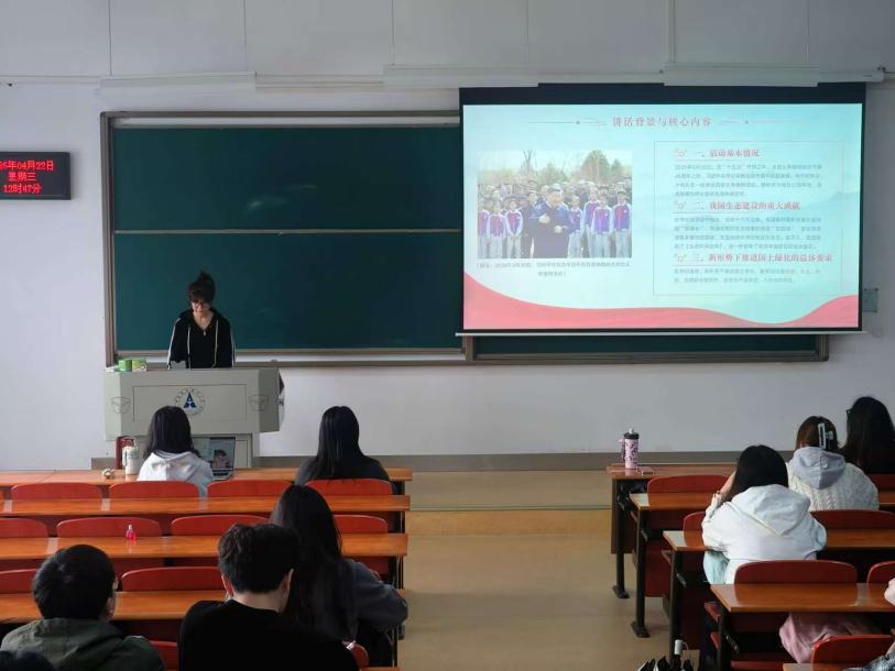 专题领学阶段,首先由茹克亚同志带领大家学习了《深入学习贯彻习近平总书记重要讲话精神——为山川大地增添锦绣,让中国式现代化底色更加亮丽》。她以2026年3月30日习近平总书记参加首都义务植树活动为切入点,系统阐述了我国生态建设的重大成就,并从“潜绩观”“科学观”“为民观”三个维度剖析了讲话精神与正确政绩观的深层联系。她号召支部党员发扬“功成不必在我、功成必定有我”的精神,立足本职,为美丽中国建设贡献青春力量。