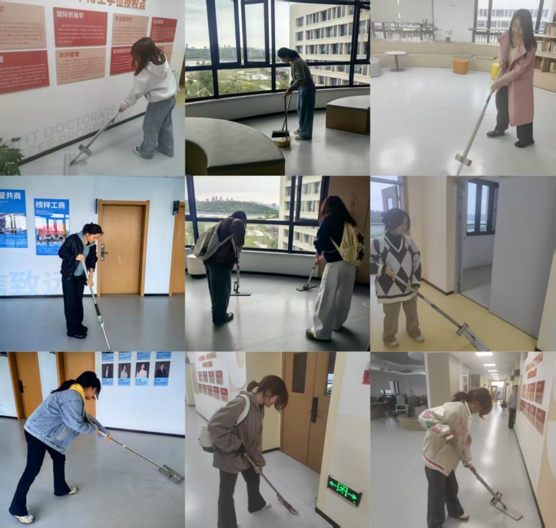 劳动过程中,同学们干劲十足、互帮互助,以饱满的热情投入清洁工作,摒弃懒散懈怠作风,在亲身劳作中体会劳动价值、涵养勤俭作风。经过集中清扫,文瀚楼行政处楼道环境焕然一新,公共区域整洁有序,整体环境卫生得到显著改善,为学院师生营造了干净整洁、舒适文明的办公学习环境。