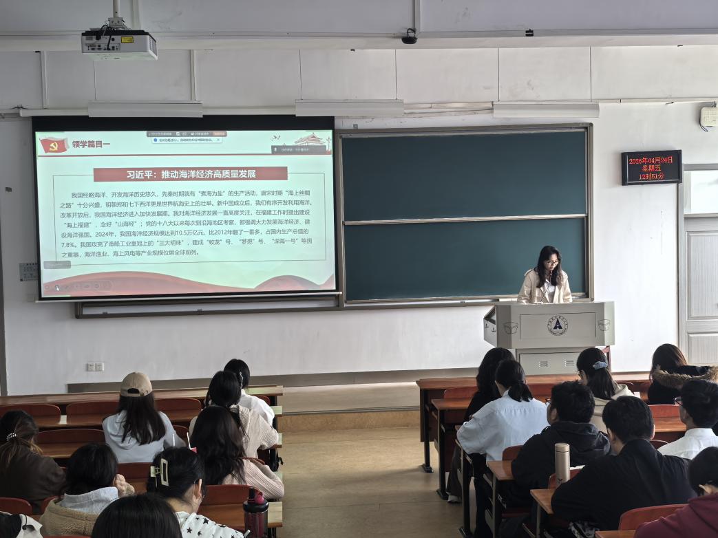 在重要讲话精神学习环节,袁诗钦同学带领大家学习习近平总书记关于推动海洋经济高质量发展的重要讲话精神,系统回顾我国经略海洋的悠久历史,详细解读推动海洋经济高质量发展重点任务,帮助党员明晰海洋强国战略布局,增强投身国家发展大局的责任感与使命感。