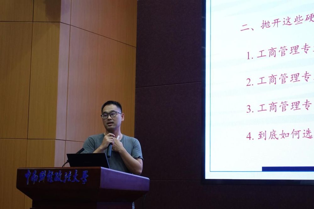 Tang Yao, Business Administration teacher, sorted the major’s value by "yesterday, today and tomorrow": he reviewed its evolution from "factory management" to modern business administration, highlighted faculty strength and detailed development paths, using "milk tea shops" to clarify its overall role and synergy with other SBA majors.