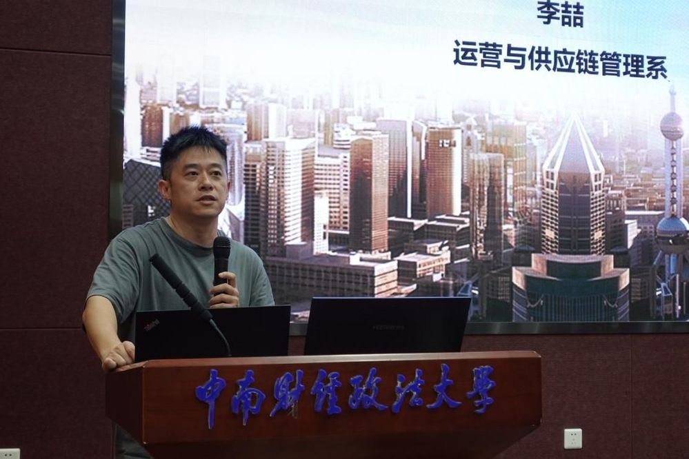 Li Zhe, Logistics Management teacher, corrected "logistics = delivery" misunderstanding, explained its link to supply chain management and upcoming upgrade to "Supply Chain Management", introducing the national logistics simulation laboratory.