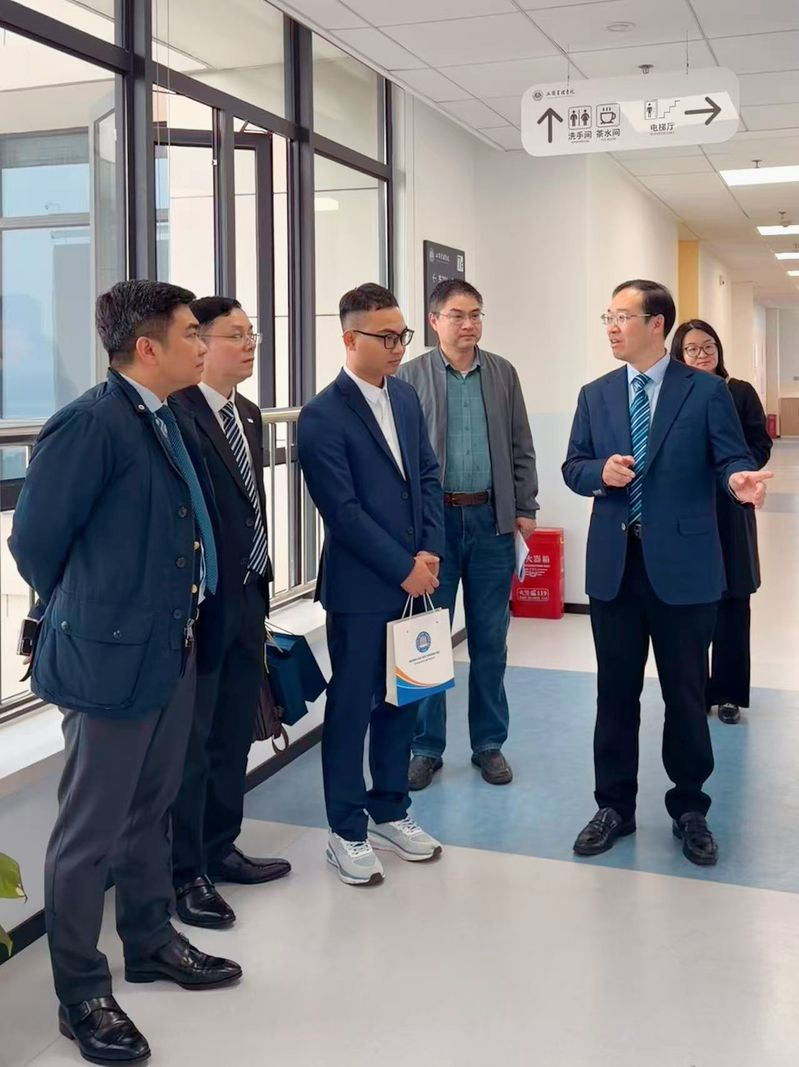 In the morning, the delegation from Thuongmai University visited the SBA. Party Secretary Yu Xiaopeng led SBA representatives to extend a warm welcome to the delegation and accompanied them to visit the overall environment of the SBA. Vice Dean Xiong Wei further supplemented the prospects of cooperation between the two parties.