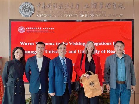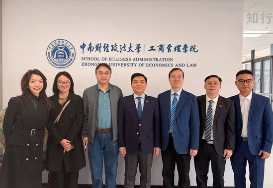 On 1st November 2025, a delegation led by Professor Ruan Huangyue, Vice President of Thuongmai University, and another delegation led by Professor Lucy Newton, Vice Dean of Henley Business School, University of Reading, successively visited the School of Business Administration (SBA) of Zhongnan University of Economics and Law (ZUEL). They held discussions on potential cooperation in disciplines development, talent cultivation, and teacher-student exchanges. Yu Xiaopeng, Secretary of the Party Committee of the SBA, hosted the reception and made forward-looking plans from a strategic perspective. Professor Xiong Wei, Vice Dean of the SBA, Professor Dong Ciwei, Vice Dean of the SBA, Associate Professor Zhou Lingxu from the Department of Tourism Management, Associate Professor Liu Wentong from the Department of Business Administration, and Ms. Zhu Yanzhen from the Office of International Affairs and Accreditation also participated in the event.