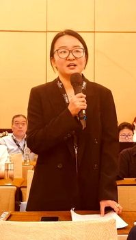 Associate Professor Zhou Lingxu delivering a speech on behalf of the school at the conference