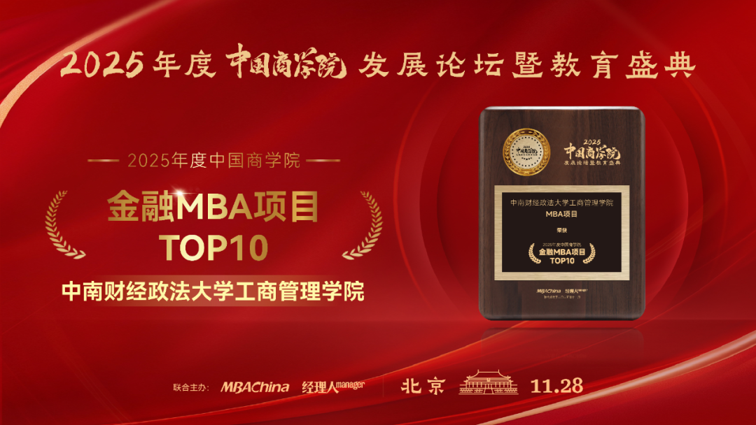 In the released list, the School of Business Administration of Zhongnan University of Economics and Law ranked 19th in the 2025 China Business School MBA Program TOP100. Meanwhile, the SBA’s MBA program secured the 6th position in the 2025 China Business School Financial MBA Program TOP10.