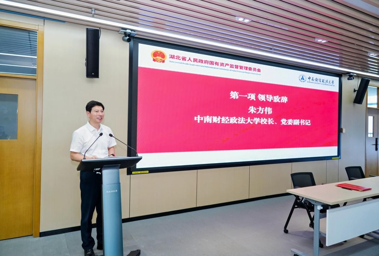 朱方伟校长在致辞中首先对湖北省国资委长期以来对学校的支持表示感谢。朱校长表示共建研究中心对推动国有企业高质量发展和构建具有中国特色、中国风格、中国气派的国有企业发展学术体系、理论体系、话语体系具有重大意义。他强调,研究中心要加强对中国国资国企改革发展的基础理论研究,为中国国企出海提供理论依据;要以问题为导向,深入研究国有企业改革发展新问题,提供可行对策;并重点关注国有企业改革发展的前沿领域,抢占国有企业改革发展研究的前沿阵地,着力打造国内一流的国资国企深化改革研究智库、成果转化平台和人才培养基地。