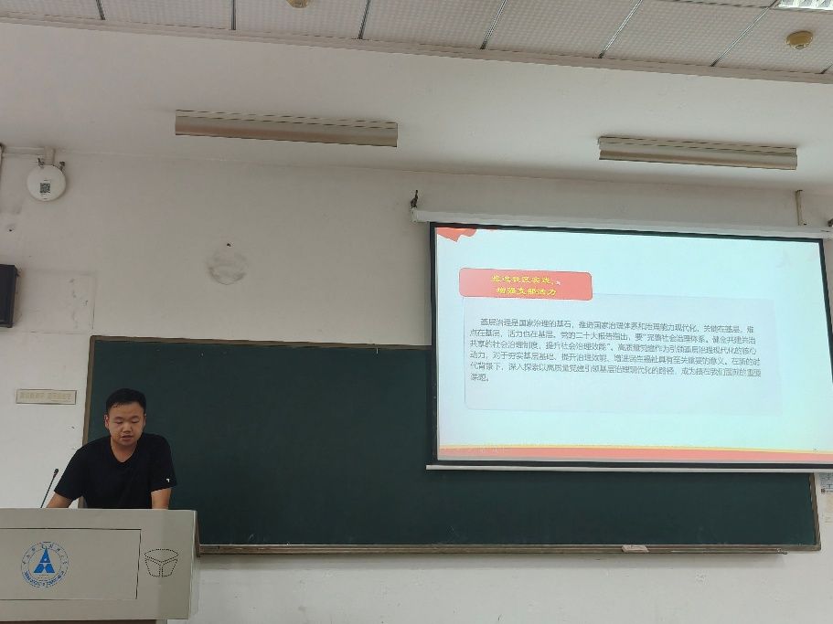 推进社区实践,增强支部活力。聚焦社区治理与支部建设,马跃同学引导团员认识社区实践的重要意义,带领团员们学习相关政策文件,了解社区作为“国家治理体系神经末梢”的重要地位,以及推进社区治理现代化对“巩固党的执政基础、增进民生福祉”的作用。随后,结合“”党建引领基层高效能治理”文这篇章,学习“从群众中来,到群众中去”的工作方法,树立“民之所忧,我必念之;民之所盼,我必行之”的服务理念。