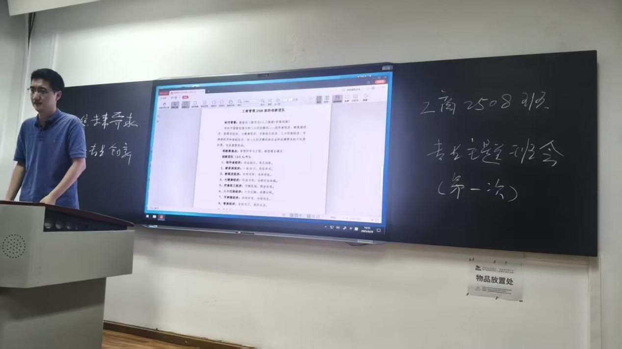 (通讯员:宫思怡、唐语晗 摄影:乔毓林)2025年9月29日下午,中南财经政法大学工商管理学院工商2508班举办的“对焦管理五大职能,开启大学学业第一次”的首次专业主题班会,在首义校区文润楼110教室顺利拉开帷幕。本次专业主题班会由班导师李波导师担任主讲人,将“管理职能”与“学业第一次”双向连接,围绕如今时代大趋势,以丰富多元的精彩内容、生动详实的个人案例帮助同学们解析学业规划与发展方向,为在场学子带来一场兼具理论深度与实践价值的思想盛宴,启发大家对未来路径的更深一步思考。