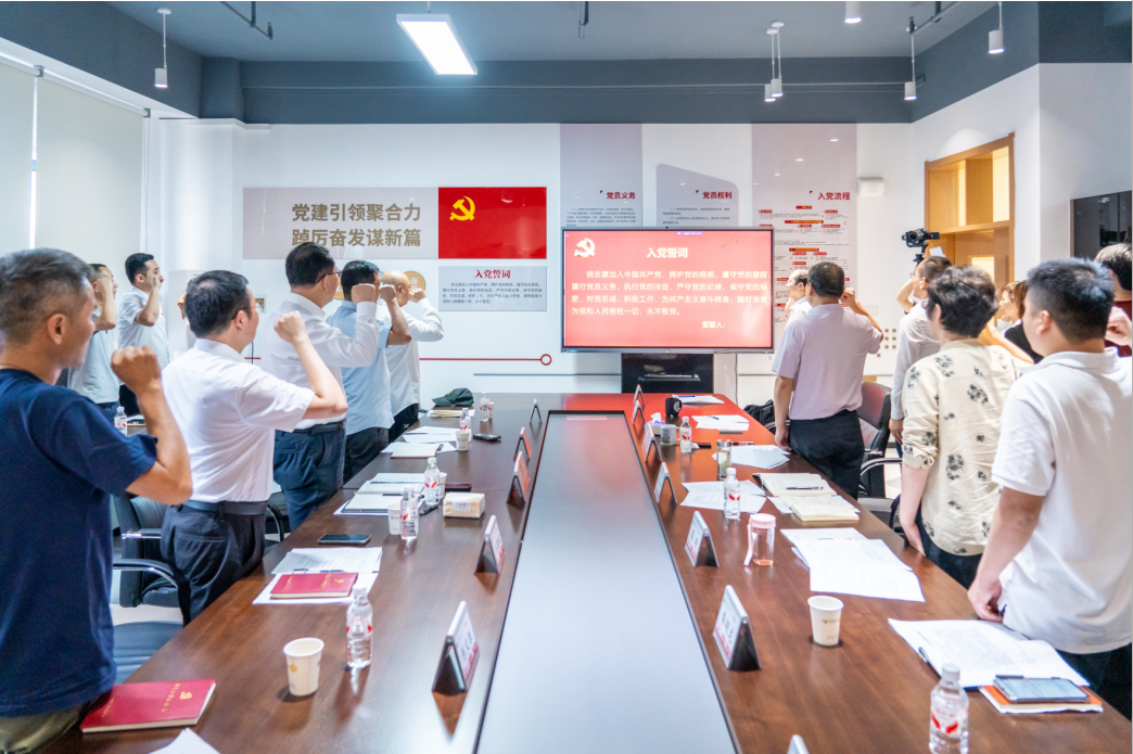 在实地参观后,学院党委精心组织“重温入党誓词”环节。在学院党委书记余小朋的领誓下,全体党员面向鲜红党旗肃立,高举右拳庄严宣誓。整齐有力的誓言不仅彰显了学院党员干部坚守初心、践行使命的坚定决心,更将红色学习的氛围推向高潮,为后续专题学习与研讨奠定了坚实的思想基础。