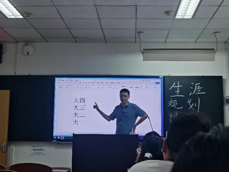 首先,南老师从自身经历出发,肯定了大家对生涯规划的积极态度。接着,以大学四年时光为线索,分别向大家讲述了大学不同阶段的主线任务。