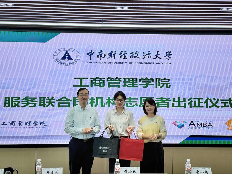 青年者,国家之魂。中国青年志愿者走出国门服务联合国机构,是践行人类命运共同体理念的生动实践,更是国家软实力提升的生动注脚。仪式伊始,黄小妹发表致辞。她围绕“路虽远,行则将至”“事虽难,做则必成”“梦虽遥,持则可圆”,回顾了学校争取中国青年志愿者海外服务计划服务联合国机构项目的历程,自2024年获批中国青年志愿者海外服务计划参与资格以来,学校始终将该项目作为培养“具有全球视野、中国情怀”人才的重要载体,输送优秀学子赴国际组织贡献智慧。她特别强调,工商管理学院所构建的“选、育、护”全链条支持体系,不仅为志愿者提供了成长平台,更成为高校服务国家战略的典范。同时,她也表达了对潘怡婷深切期望,期待其在国际舞台展现中南大工商学子的专业素养与中国青年精神风貌,为构建人类命运共同体注入青春力量。