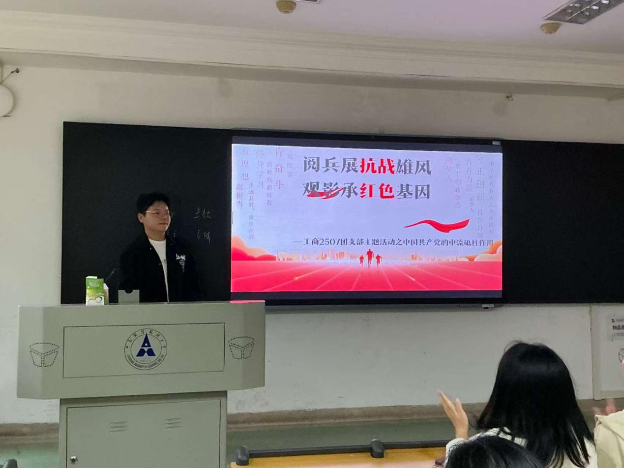(通讯员:仙果 摄影:刘恬妤)2025年10月17日,工商2507团支部以“深化团员青年对中国共产党在抗战过程中中流砥柱作用的理解”为导向,积极开展“阅兵展抗战雄风,观影承红色基因”为主题的团日活动。从集体合唱团歌到回顾九三阅兵,由历史引例到共产党挺膺担当,活动层层递进,传递爱国爱党精神、增强团员凝聚力。