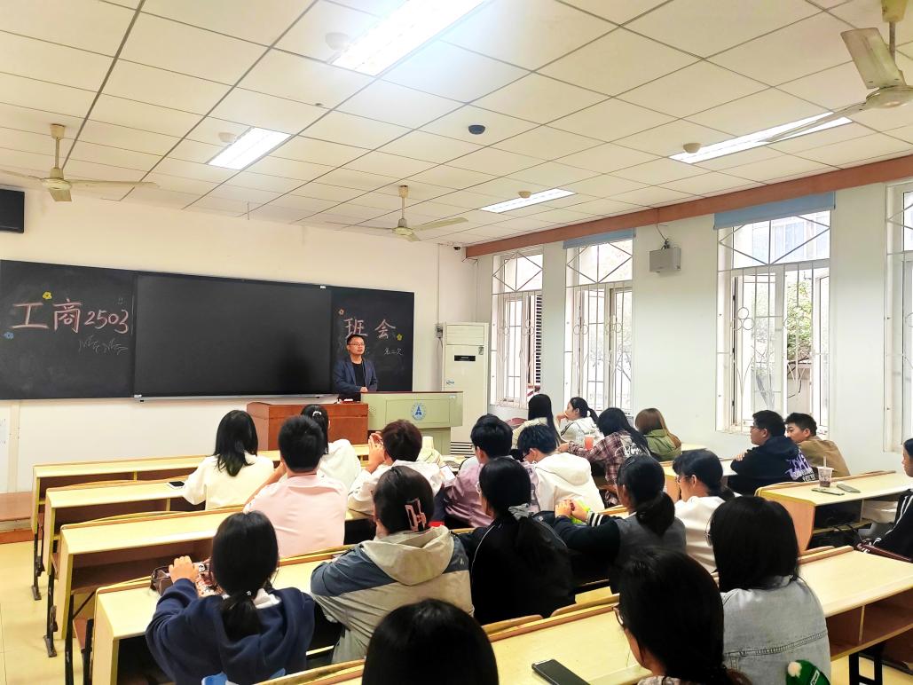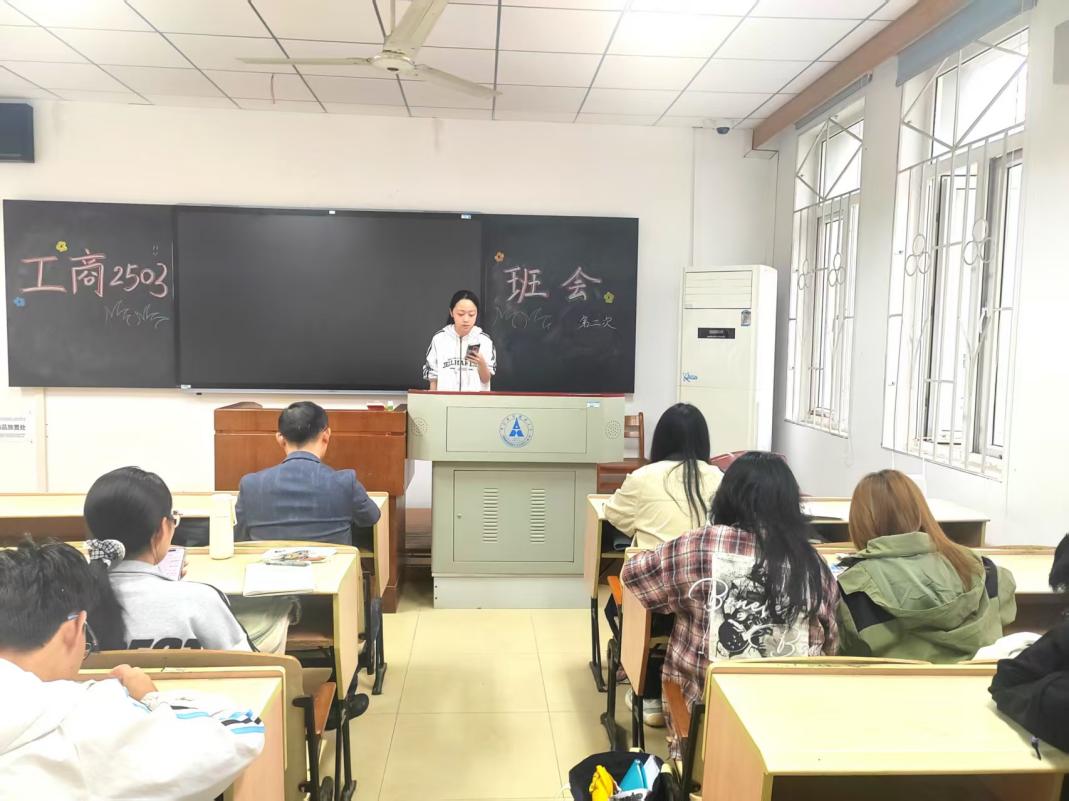 新闻网讯(学生通讯员 蔡思羽 摄影 美合日古丽·吐尔逊)为帮助同学们尽快适应大学生活,构建团结友爱的氛围,增强班级凝聚力,同时也为了解决班级运行一个月以来的诸多问题,工商2503班于2025年10月16日14时30分在文泽楼101教室开展“奋楫扬帆新征程,同心筑梦向未来”主题班会活动,班会由班长马佳乐主持,班级导师汤一鹏副教授出席本次活动。活动取得热烈反响。