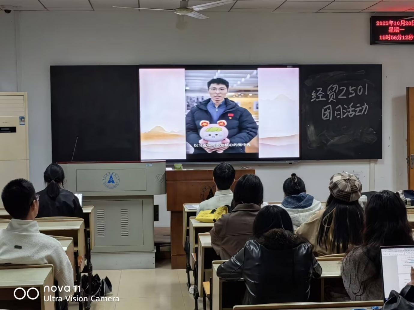 下午4点50分,活动接近尾声。班级团支书吕婧雯,班长刘浩宇对本次团日活动进行总结发言。总结结束后,全体团员在座位上合影,为这次主题团日活动画上圆满句号。