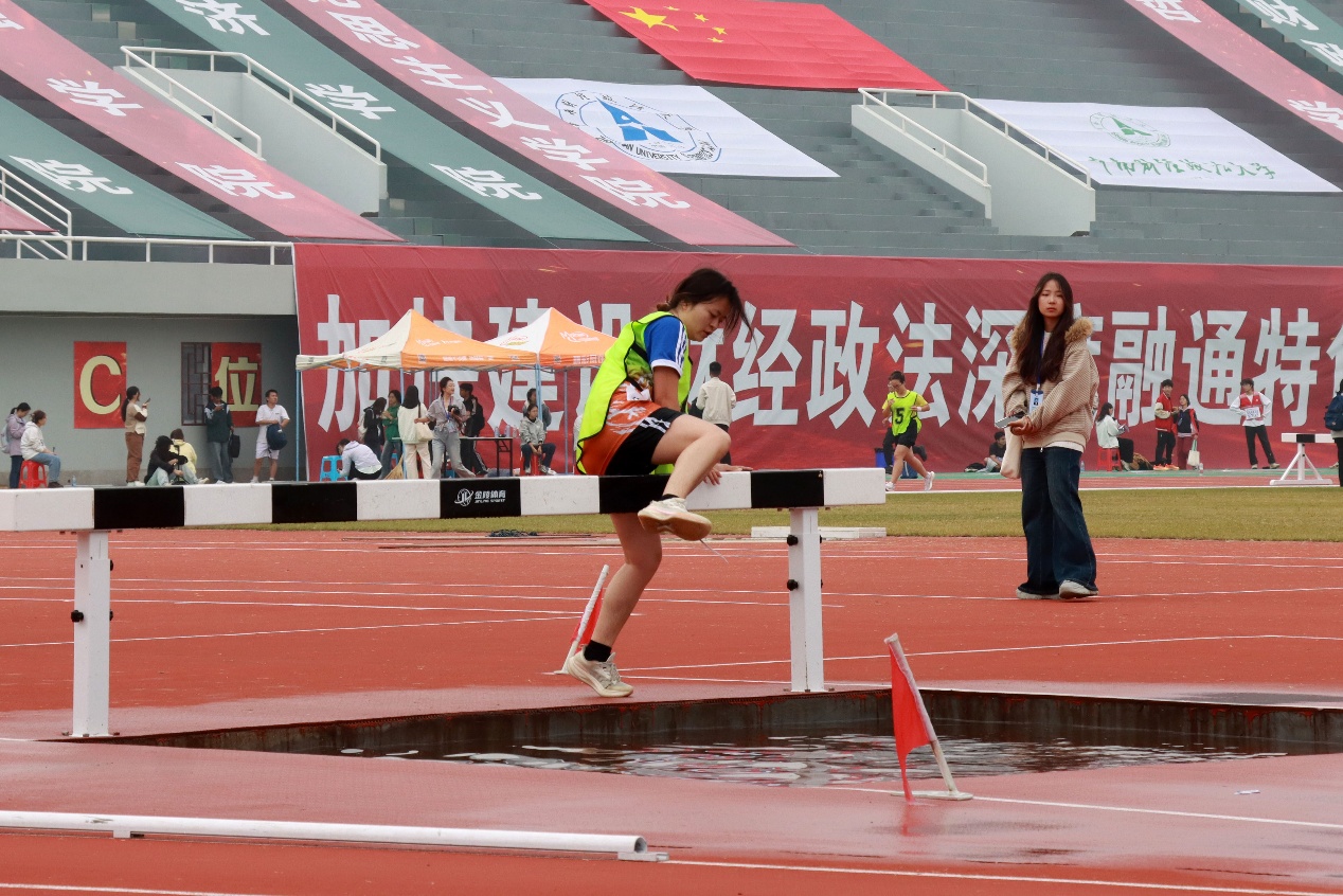 2000米赛道上,障碍林立,林婕妤跨越栏架、踏过水坑,漫长赛程考验耐力,复杂障碍挑战意志,她咬牙坚持,用稳定的节奏对抗疲惫,用顽强的斗志克服挑战。最终以第六名的成绩冲线,以不服输的韧劲,在赛道上刻下工商学子的拼搏印记,绽放青春风采。