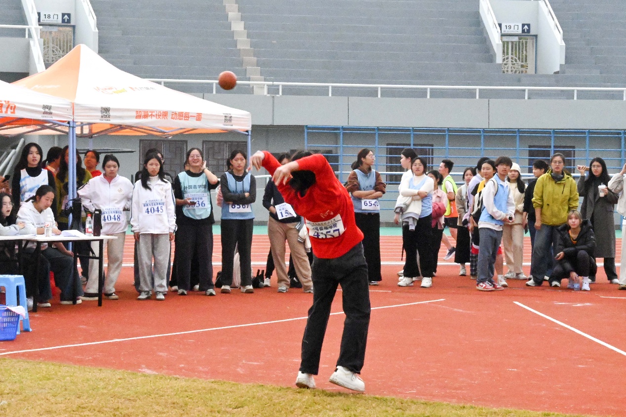 双腿跨步稳扎稳打,两臂收紧借力爆发。蓄力、摆臂、后抛,一套动作行云流水。经过多轮角逐,我院李浩淼、沈妍劭同学进入决赛,李浩淼同学表现出色,成功摘银。