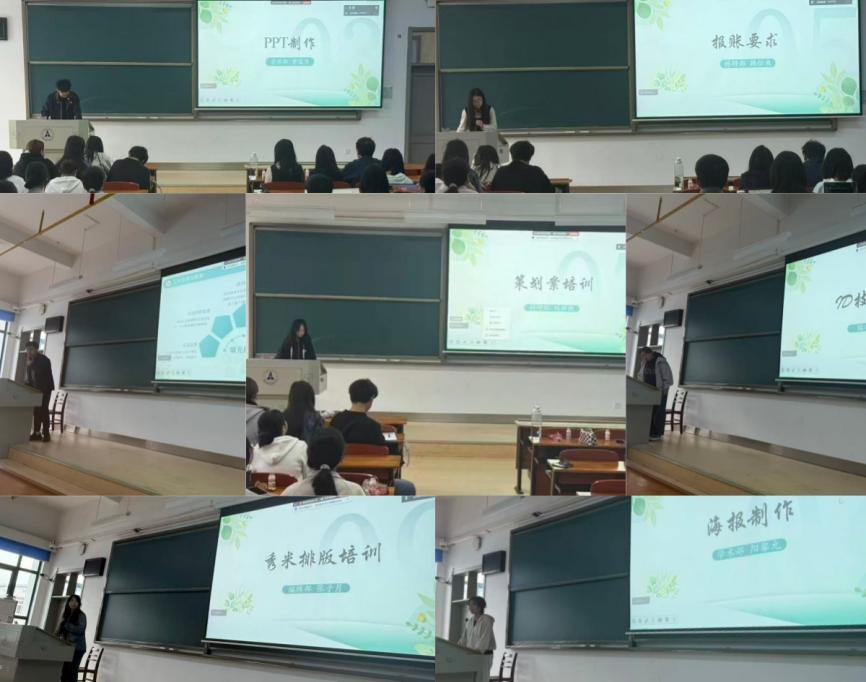 学术部黄俊泽同学就PPT设计逻辑与高效制作技巧进行了现场演示与分享;科研部韩怡爽同学详细解读了财务报账的规范流程与注意事项;科研部周昊同学以“列提纲-充实内容-整合成文”的三步法,清晰拆解了新闻稿的写作规范与要点;科研部刘静微同学则通过情景模拟与案例教学,引导同学们沉浸式掌握策划案的撰写精髓;编辑部夏凡同学介绍了专业排版软件ID的核心操作技巧;编辑部张子月同学现场演示了秀米排版工具的高效应用方法;学术部阳馨允同学则从创意构思与视觉传达入手,分享了打造主题鲜明、富有冲击力海报的设计理念。整场培训内容充实、逻辑严密、讲解生动,兼具理论高度与实践指导意义。