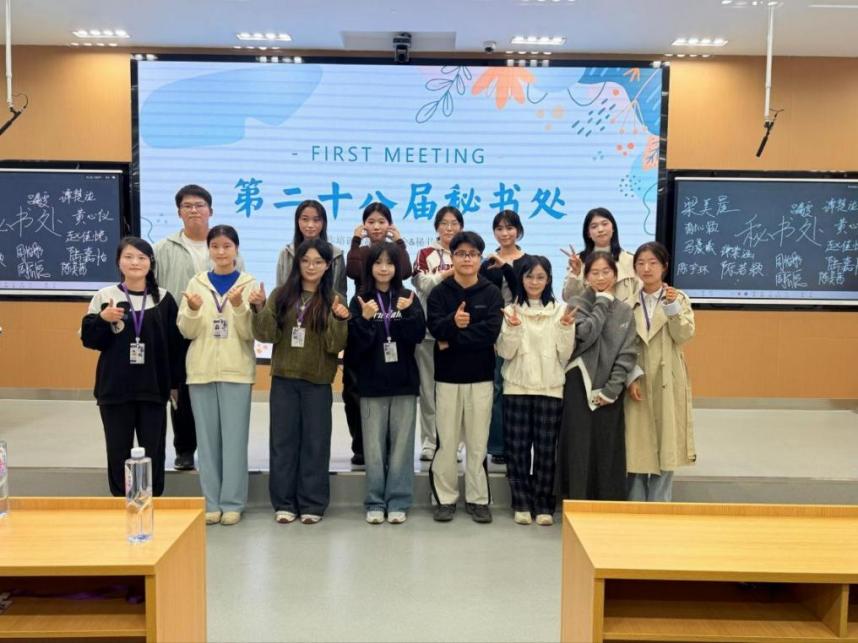 (通讯员 胡杉 吕婧雯 黄心仪 谢心颖 陈宇环 梁美晨)2025年10月18日下午,第二十八届学生会秘书处第一次见面会暨新干事工作培训会与南湖校区文波楼智慧教室112正式召开。主席团成员周岳辰、秘书长陆嘉怡、副部长马晨曦、陈若颖及全体2025级成员共同参与。
