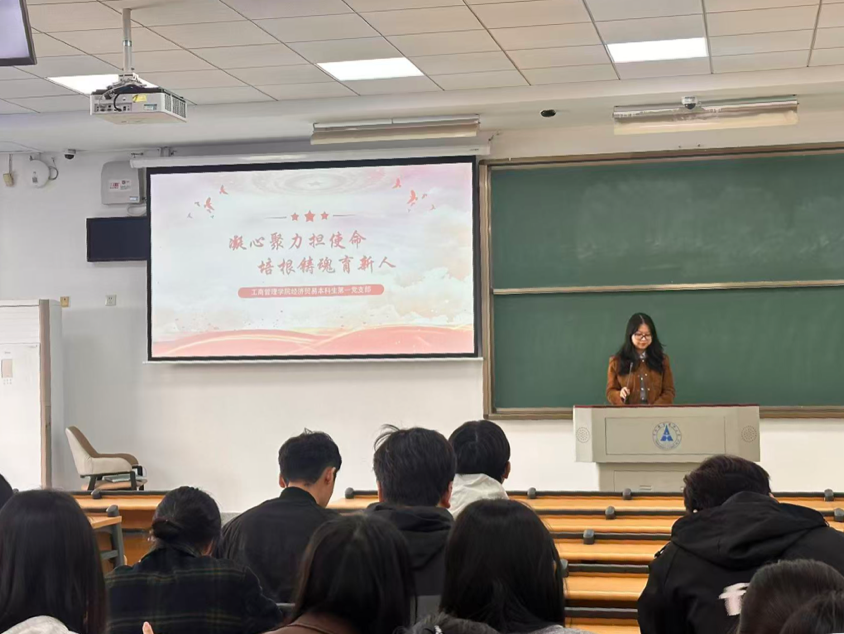 (通讯员 刘佳琳)为凝聚支部力量、筑牢思想根基,工商管理学院经济贸易本科生第一党支部与经济贸易本科生第二党支部于10月22日在文泰楼420召开“凝心聚力担使命,培根铸魂育新人”10月主题党日活动。本次活动由宋润田同学主持,支部全体成员参会。
