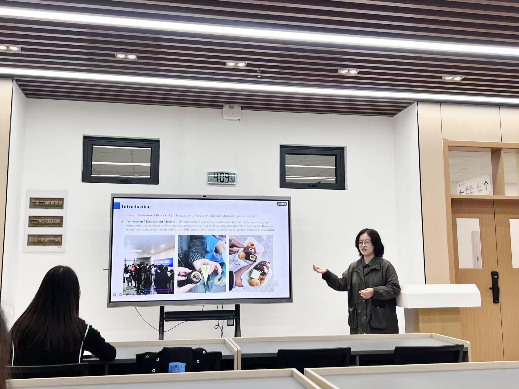 朱亦磊同学首先对本篇文章的研究背景和核心研究问题进行了介绍。这篇文献围绕“社会单元化效应(SUE)”,揭示了社交场景对饮食选择的关键影响:当消费者独自选择食品时,更关注食物总量,会挑选更多小单元食品;而在公共场合或感知到被观察时,印象管理动机被激活,会刻意减少小单元食品的选择数量,避免因 “数量过多” 被他人负面评价,即便实际摄入量与选择大单元食品相当。