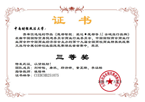 (通讯员王臻李萌)近日,第十九届全国高校商业精英挑战赛文旅与会展创新创业实践竞赛落下帷幕。中南财经政法大学工商管理学院派出的参赛团队凭借扎实的专业功底、创新的实践方案,在众多高校队伍中脱颖而出,斩获多个奖项,充分展现了学院在创新型人才培养领域的显著成效。