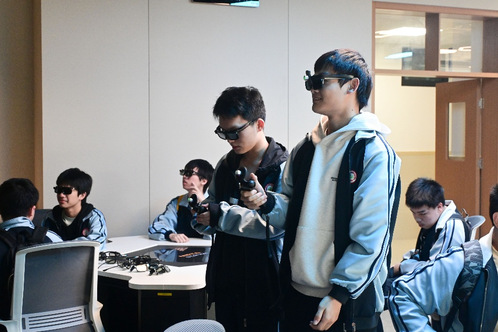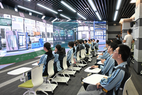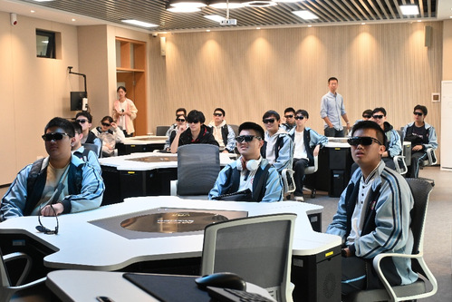 在本科生院黄志朗老师的带领下,汉铁高中师生在文瀚楼一楼实验中心体验了虚拟仿真实验和全景教学场景。融合新技术的教学模式,让他们感受到大学学习的多样性。