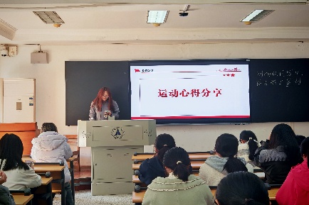 强身健体扬斗志,青春飞扬展风采。在第四个环节中,主持人以中华人民共和国第十五届运动会为引,向同学们讲解了体育运动对个人、对社会、对国家的积极作用。在接下来的“萝卜蹲”体育小游戏中,同学们参与热情高,“阿布都海比尔迪力木拉提萝卜”“热干面萝卜”等形式各异的“萝卜”多姿多彩。刘继蓉同学也作为大运会运动员代表,向大家分享了她的参赛感言,内容丰富,情感真挚,极大地激发了同学们的运动热情。