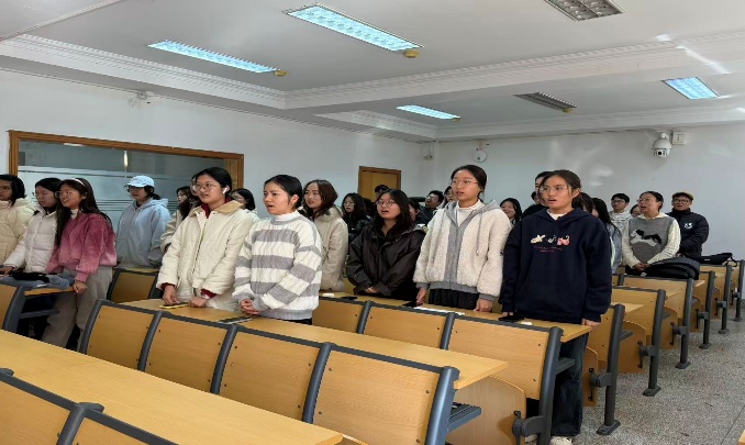 活动第一项,全体起立,齐唱团歌。在庄严肃穆的氛围中,同学们将团歌的句句铭记心中,誓为中国共产主义事业贡献力量。