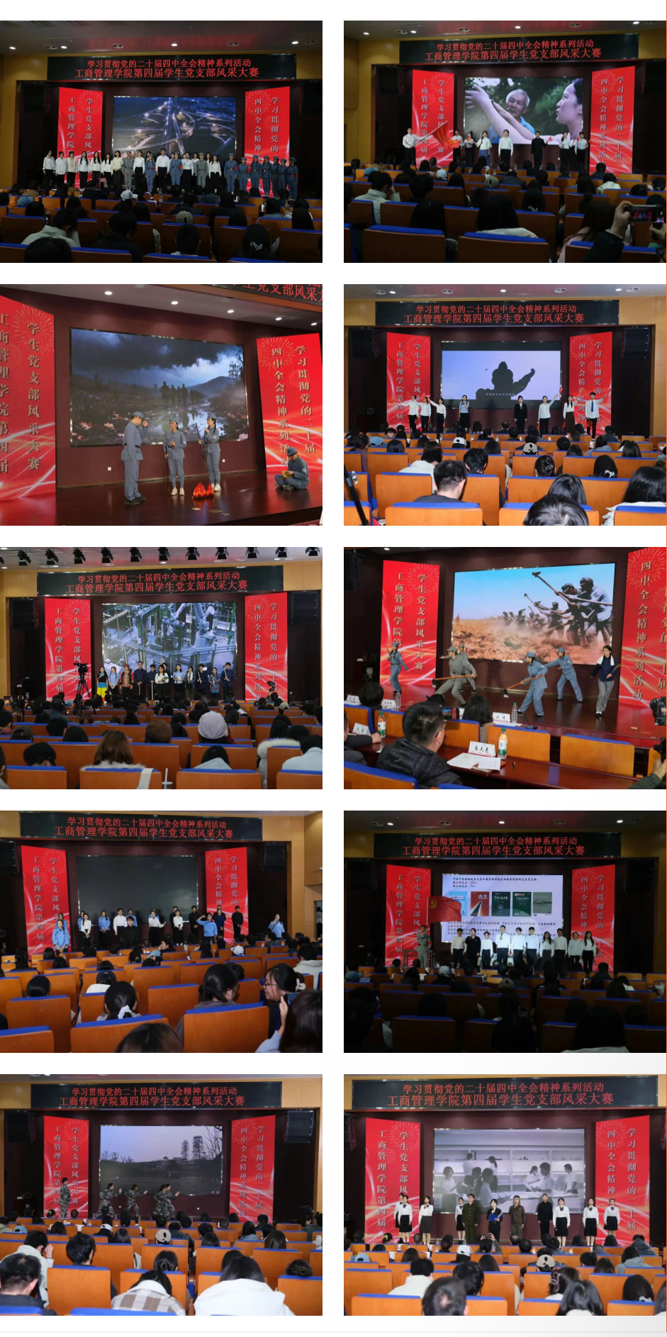 从情景剧到微党课,从诗朗诵到音诗画,各支部用青春的创意与真诚的演绎,完成了一次深刻的爱国主义教育,深刻展现了新时代商科青年从伟大抗战精神中汲取力量,扎根实践,以经世济民的抱负和扎实卓越的才干,勇担时代重任,在民族复兴的征程上,书写属于新时代商科青年的壮丽篇章。至此,工商管理学院“赓续抗战精神血脉,筑牢支部战斗堡垒”第四届学生党支部风采大赛圆满结束!