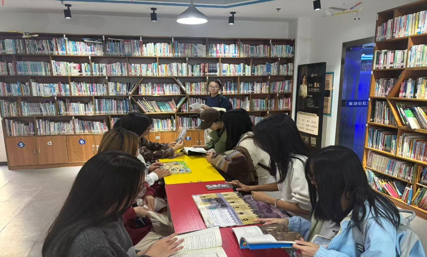 在知识科普书籍区,同学们拿起书本,汲取知识的力量。通过研读航天书籍,科普文章了解到我国航天发展的历史与成就,并且阅读后进行了讨论,树立了基本的中国航天观,同时激发了自己作为商科学子想为中国航天事业做贡献的激情。