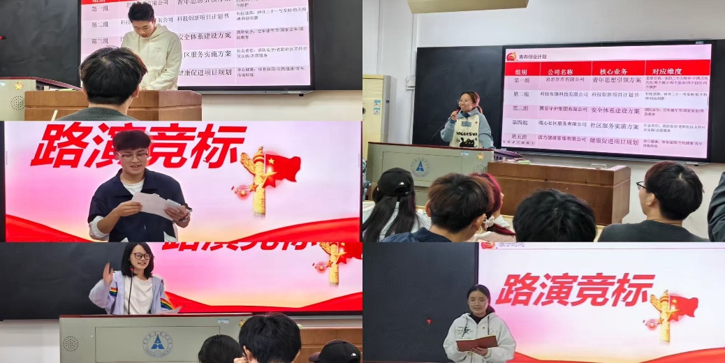第一组思想智库公司,以党的二十大精神为文化内涵,提出了青年思想引领这一项目;第二组“科技先锋科技有限公司”以情景剧形式展示安全体系建设方案,强调保守国家秘密的重要性;第三组“国安守护集团有限公司”聚焦国家安全体系建设,公司致力于国防安全、国家安全教育等业务;第四组“爱心服务有限公司”关注社区安全与老年关怀,提供助医、助餐、广场舞等服务。第五组“活力健康管理有限公司”计划开设融合数字化管理的洗浴中心,引入机器人服务和电子档案系统。