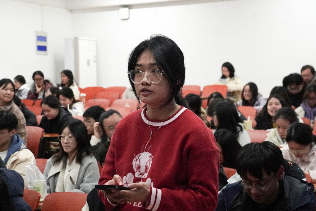 工商管理本科生第二党支部梁佳依同学在分享中重点提及,此次党校培训的 “中国式现代化共同富裕之路” 核心课程,以系统理论、鲜活案例和深刻时代洞察,为她打开了认知新时代的思想之窗,让她深受触动、倍感振奋。“生逢其时,更要重任在肩。” 梁佳依表示,作为新时代青年,她将把培训所学切实转化为行动,为推进中国式现代化、全面建成社会主义现代化强国注入青春动能。