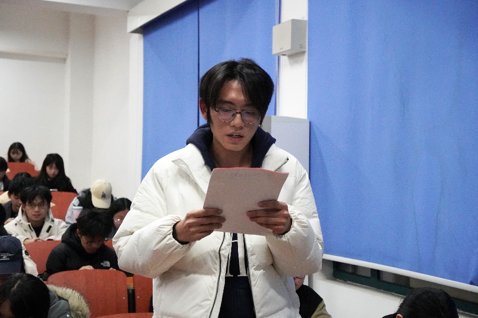 运营与供应链管理本科生党支部的陈睿杉同学率先发言,她说:“参加这次党校学习后,我深受触动。意识形态的培训讲座让我深刻认识到了思想教育的重要性。我们必须坚定立场,不被错误思潮误导,用正确思想武装头脑,做党的政策主张的坚定守护者。”此外陈睿杉同学结合党的二十届四中全会精神,呼吁青年党员应积极响应党的号召,关注时事政治,用实际行动践行“请党放心,强国有我”的青春誓言。