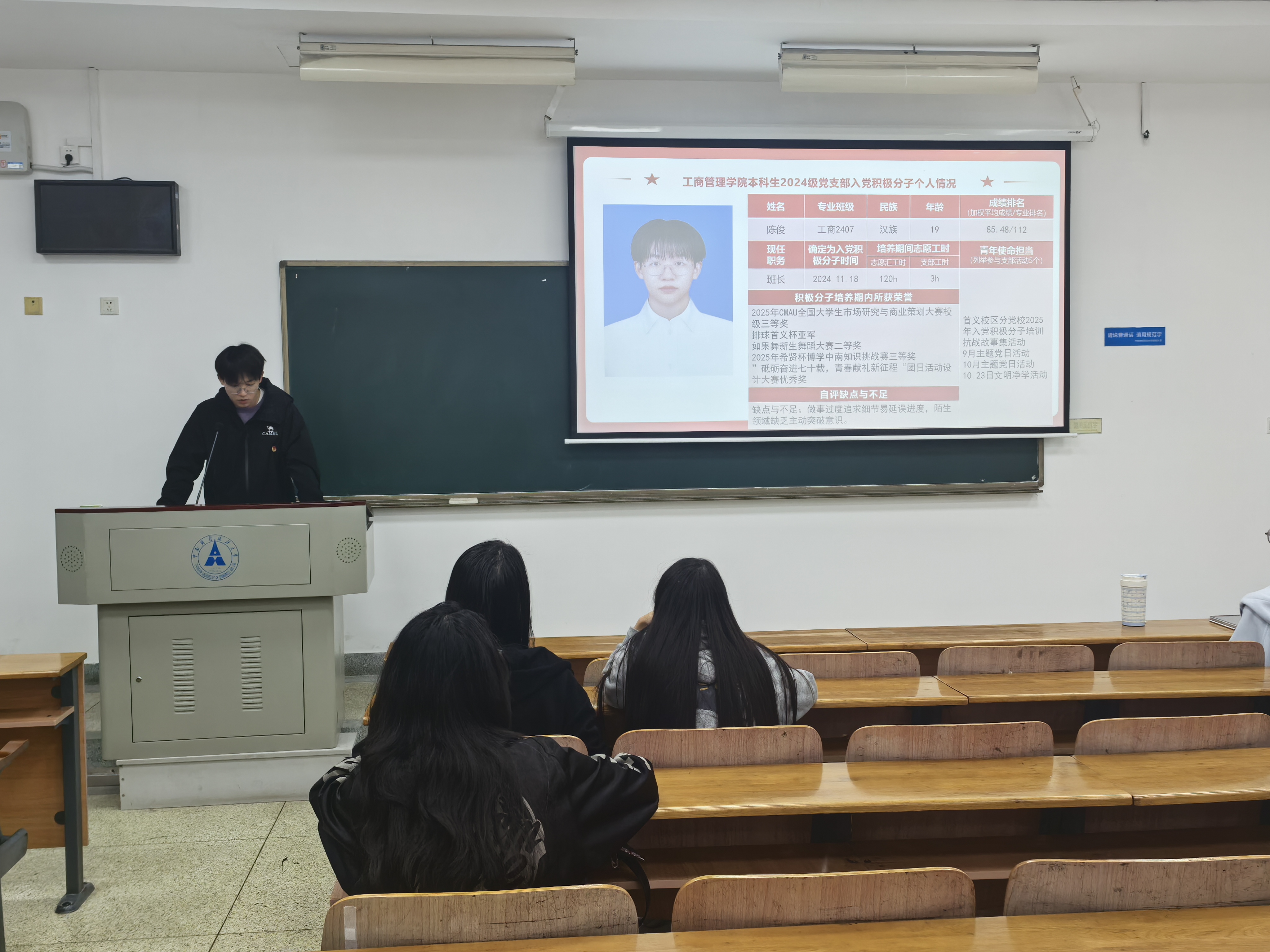 在本次团员大会上,苏钰瑶、陈俊、阿克波塔·塞开三位入党积极分子依次进行个人汇报答辩,三位同学汇报逻辑清晰、态度诚恳,充分展现了青年团员的良好风貌。