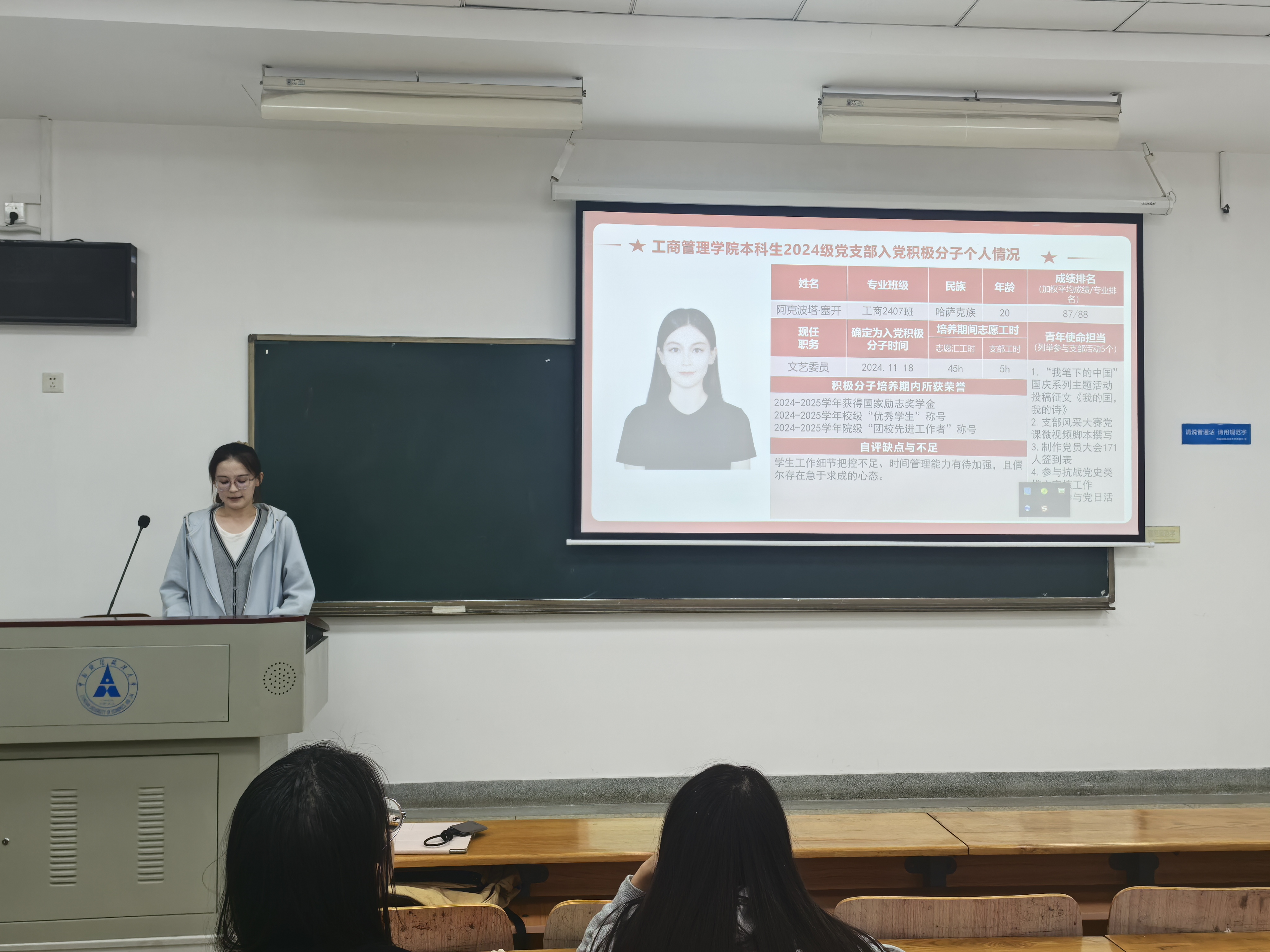 阿克波塔·塞开同学结合自身成长经历,表达了扎根校园、服务同学、向党组织靠拢的坚定决心。