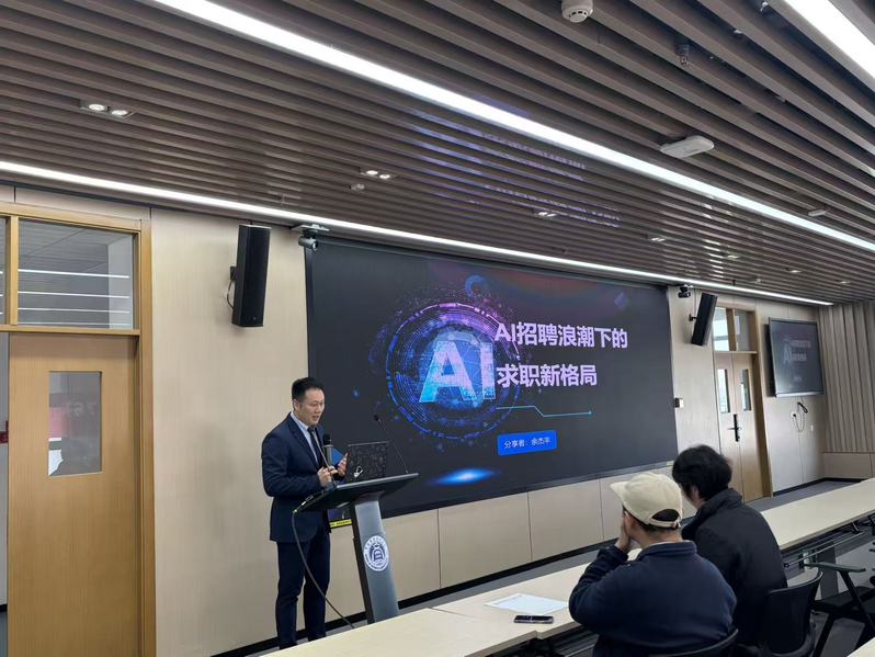 本次讲座以“AI招聘浪潮下的求职新格局”为主题,由余杰丰老师主讲。余老师从人工智能技术快速发展及在招聘领域的实际应用切入,引发听众对AI重塑求职生态的思考,随后围绕AI招聘现状与趋势、AI面试官工作原理、AI在简历评估与面试生成中的应用、借助AI提升求职竞争力四大核心模块展开讲解;他结合自身多年HR实战经验与企业AI转型案例,解析了AI招聘的关键环节,现场演示了豆包、DeepSeek等AI工具的使用,并总结了中国企业AI招聘应用的三个阶段及面临的成本、技术、人才瓶颈;最后,余老师提出掌握AI提示词技巧、善用AI进行职业规划与自我认知、借助AI优化简历、主动适应AI面试环境四点核心建议,助力学生在AI浪潮中把握求职主动权。