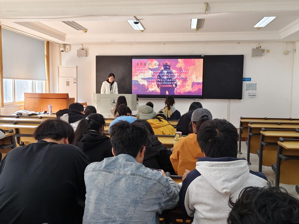 在“洞察银龄新态势,传承中华孝善风”的版块,方吉娥同学阐释了从养老金、医疗、法律保障与权益维护等多方面展示湖北的老年政策和养老体系,并展示了湖北在养老事业方面取得的成果,让同学们进一步洞察中国共产党领导下中国的养老政策取得的成效,同时认识到了助老扶老作为中华优秀传统美德在当代中国的体现。